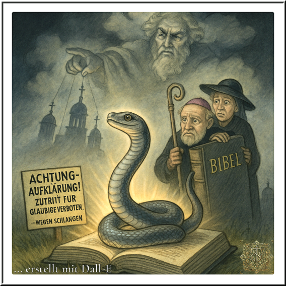 Nur ein mit theologischem Hartholz verbretterter Betonkopf kann in dieser Geschichte Betrug erkennen. Die Schlange sagt die Wahrheit, Gott reagiert wie ein beleidigter Autokrat, und Adam und Eva schieben brav die Schuld ab – nach unten, wie es sich für Untertanen gehört.