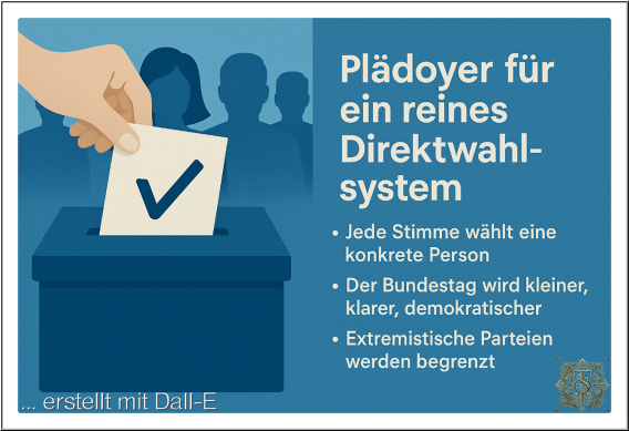 Ziel ist nicht die proportionale Sitzverteilung nach Parteien, sondern die Bildung handlungsfähiger Mehrheiten und die klare Verantwortung einzelner Mandatsträger.